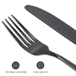 OEC Kitchen Bestekset 36-delig – Zwart – 6 Persoons – Steakmessen – Messen – Vorken – Lepels – RVS