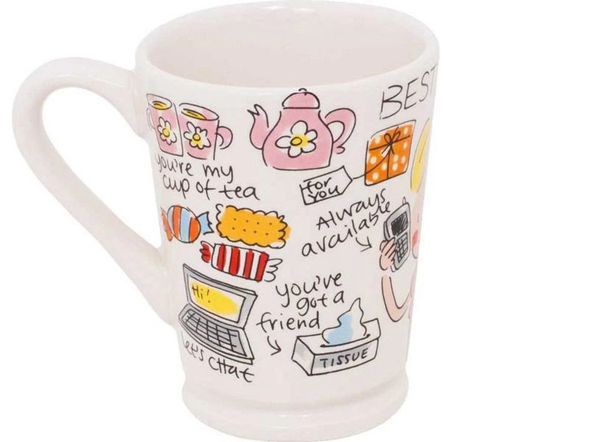 Heb jij een echte best friend en wil je dat diegene laten weten? Geef je vriendin deze leuke beker op voet van Blond Amsterdam cadeau! Op de beker staan allerlei illustraties afgebeeld van leuke dingen die je met jouw beste vriendin kan doen.
