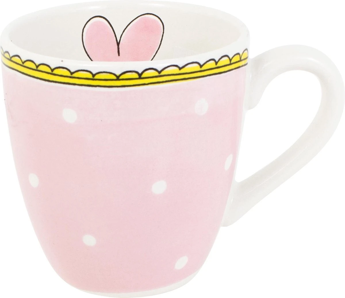 Deze lichtroze minimok met witte stipjes en een gele bovenrand behoort tot de collectie Even Bijkletsen van Blond Amsterdam. In de minimok staat een illustratie van een roze hart afgebeeld. De minimok is leuk te combineren met het andere servies uit de collectie Even Bijkletsen.