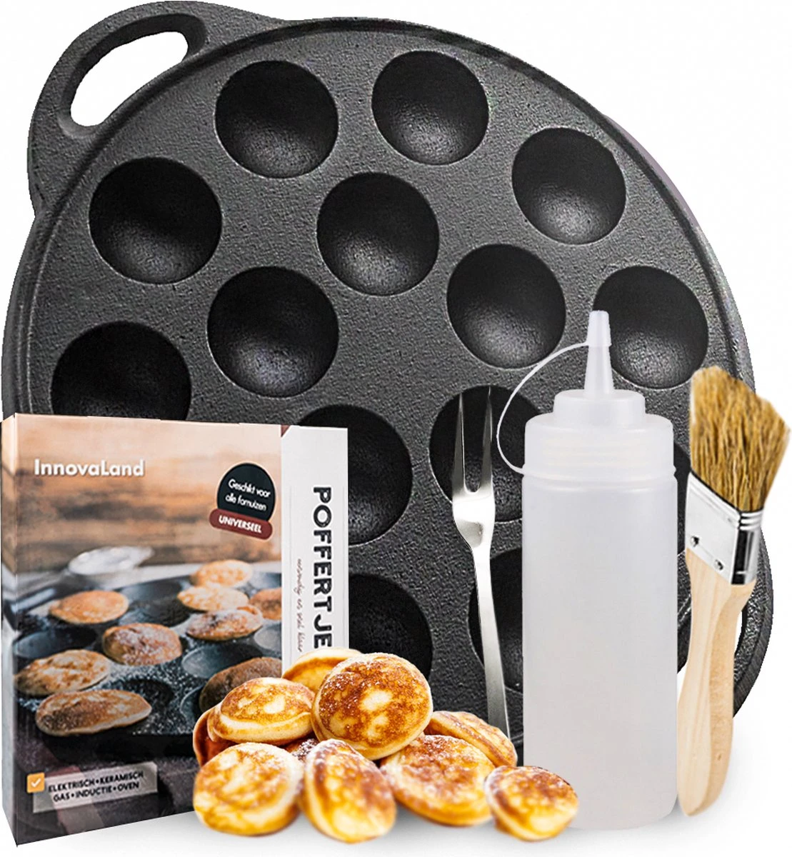 Jong of oud, iedereen is fan van deze oer-Hollandse lekkernij: poffertjes! Ze zijn heerlijk als tussendoortje of als maaltijd. Met deze pan maak je zelf eenvoudig en snel de allerlekkerste poffertjes.