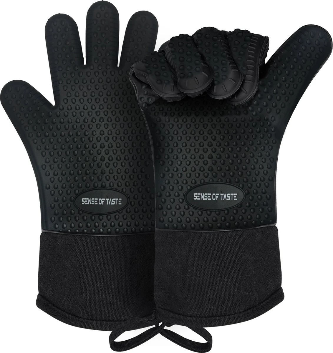 Sense of Taste biedt een vernieuwd design, voor zowel veiligheid als comfort! De extra lange mouwen zorgen voor extra bescherming tegen hitte en vervelende spetters. De ovenhandschoen beschikt over een gewatteerde- en katoenen binnenvoering. Geniet van comfort tijdens het koken!