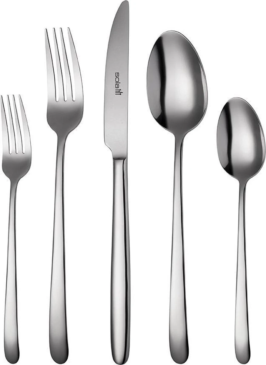 Elk stuk heeft een stevig en verzwaard handvat wat een goedkoop gevoel voorkomt en maximaal comfort biedt tijdens het vasthouden. Elk stuk wordt geleverd met een mooi en trendy design en opvallende uitstraling. Deze Sola bestekset is geschikt voor intensief gebruik in zowel chique als informele restaurants of thuis voor elke diner situatie.
