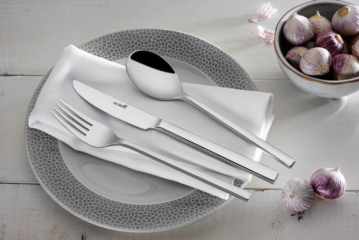 Elk stuk heeft een stevig en verzwaard handvat wat een goedkoop gevoel voorkomt en maximaal comfort biedt tijdens het vasthouden. Elk stuk wordt geleverd met een mooi en trendy design en opvallende uitstraling. Deze Sola bestekset is geschikt voor intensief gebruik in zowel chique als informele restaurants of thuis voor elke diner situatie.
