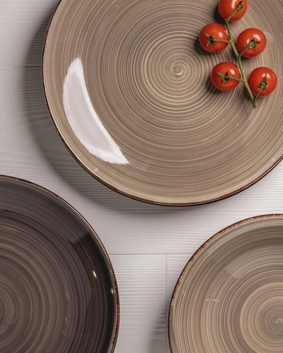 Serviesset Vintage Loft 18-DeligWil je graag een keer iets anders dan je standaard witte serviesset, maar wil je niet teveel uitpakken? Kies dan voor deze Vintage Loft serviesset. De prachtige neutrale kleuren zijn anders, maar vallen zeker niet teveel op. Let wel op: deze borden worden gemixt geleverd, er kan dus geen kleur gekozen worden. De set bestaat uit: 6 Ontbijtborden Ø 19,5 cm 6 Diepe borden Ø 20.5 cm 6 Dinerborden Ø 27 cmJe kan de serviesset uiteraard aanvullen met het andere servies uit de collectie. Kies bijvoorbeeld voor de mokken of bekers! Ook kun je uiteraard de set aanvullen met ander servies, kijk naar de andere collecties van Studio Tavola.